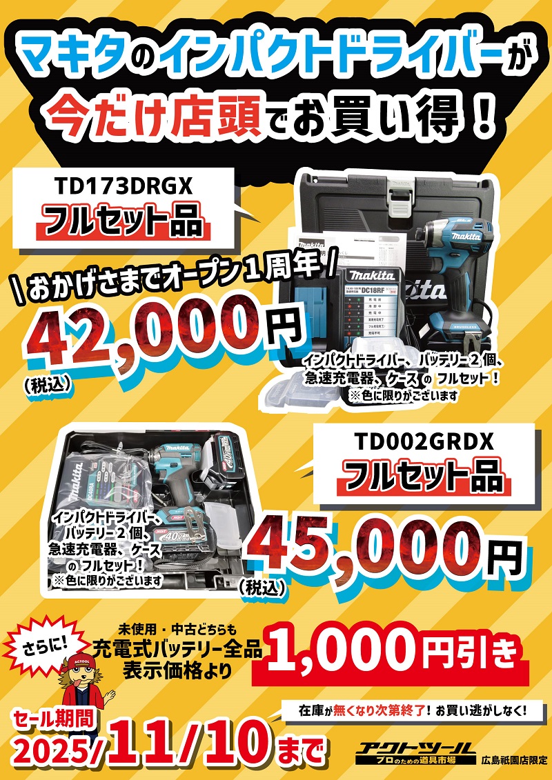 現在、アクトツール広島祇園店では出張買取と宅配買取は行っておりません。店舗で査定・買取を行っております。